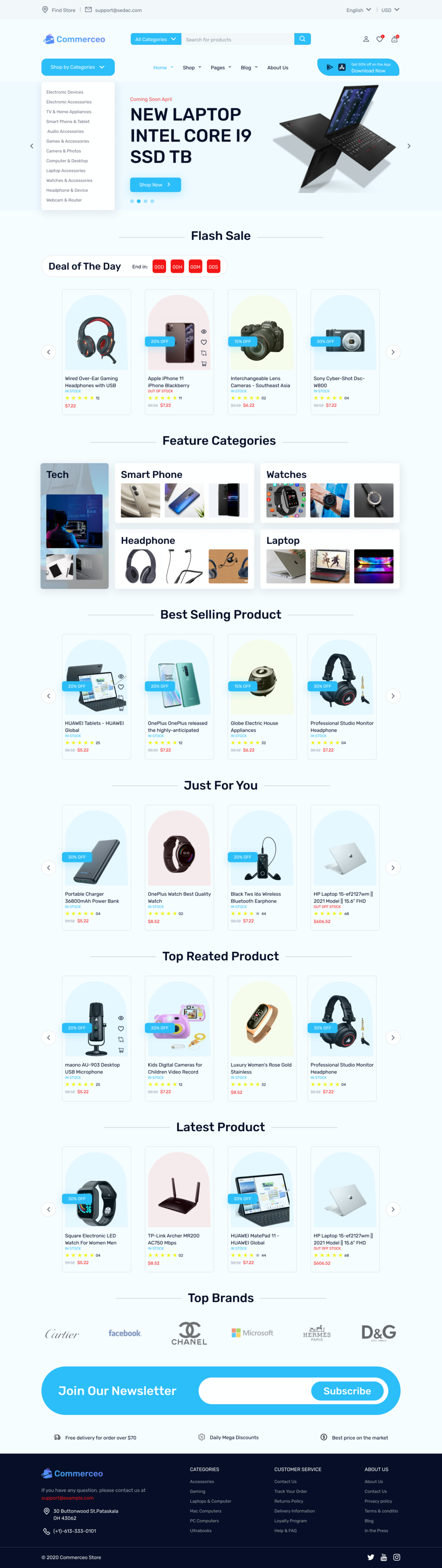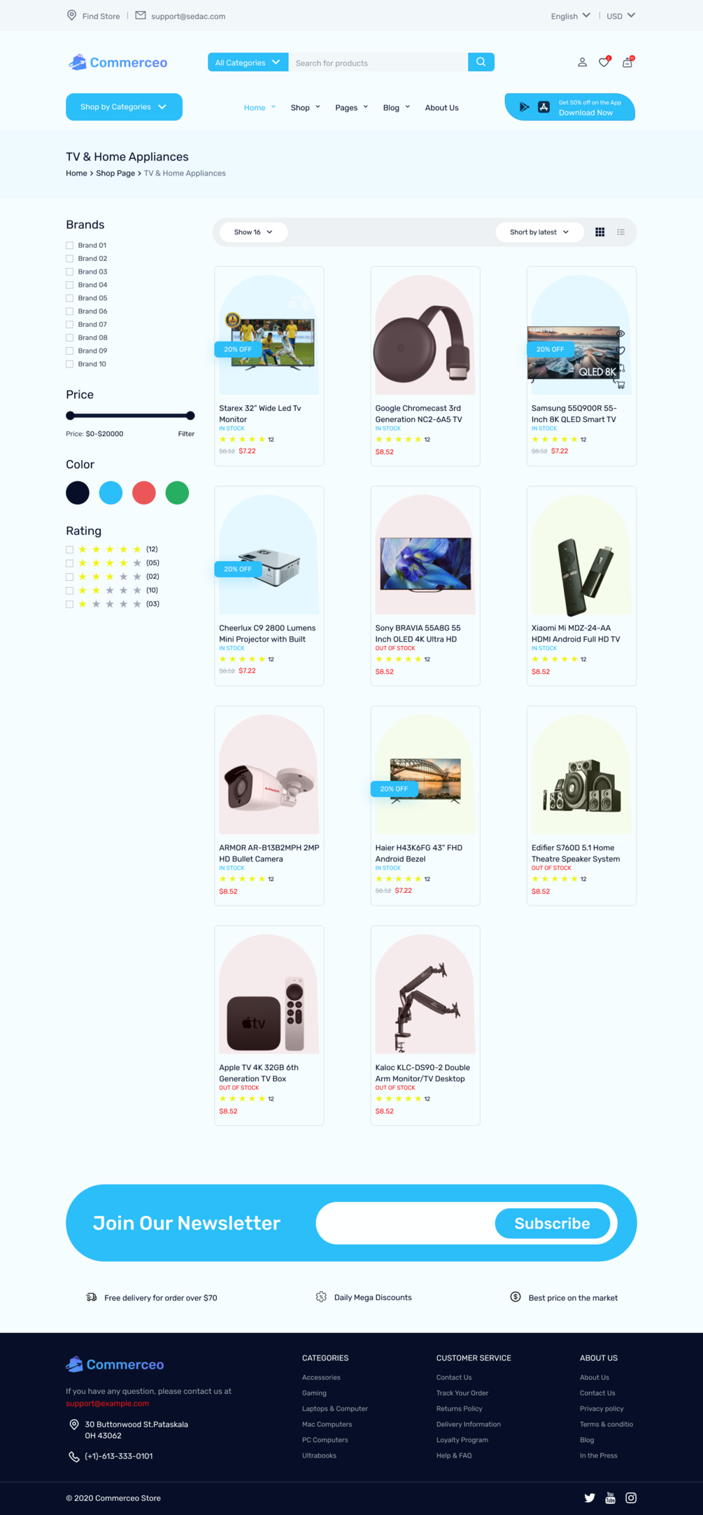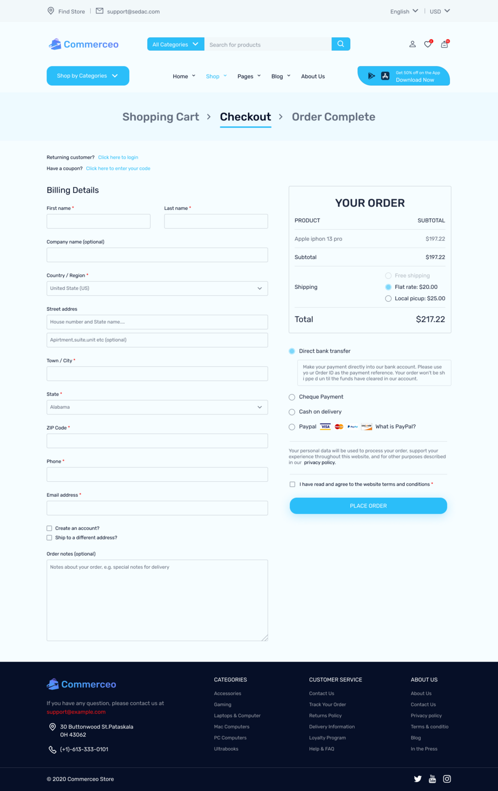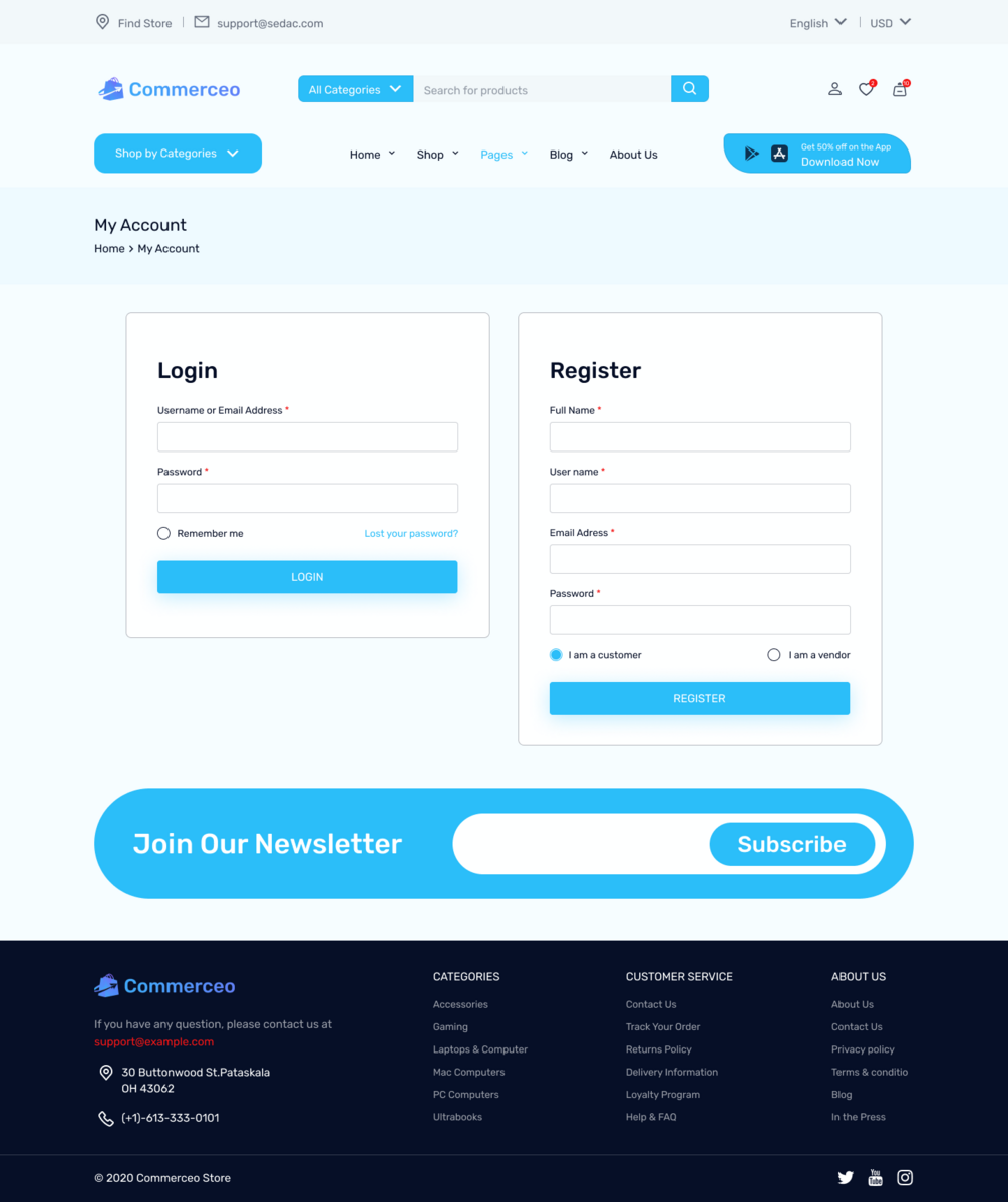 Commerceo- eCommerce Figma Template. It can be customized easily to suit your wishes. Just change text, images, and colors and get your website. All images are used for demo proposals only. They are not included in the download package. Figma Pages ● 01_Home ● 02_Home ● 03_Home ● 04_Home ● 05_Home ● 06_Home ● 07_Home ● 08_Product Details ● 09_Product Details ● 10_Shopping Cart ● 11_Checkout ● 12_Order Complete ● 13_Wishlist ● 14_About Us ● 15_FAQ ● 16_404 ● 17_Contact Us ● 18_Review ● 19_My Account