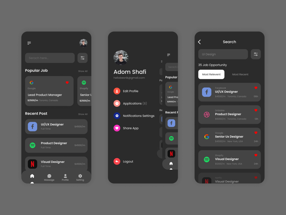 This is the result of my exploration design of Job finder. job finder is a platform where you can find jobs according to the skills and fields you want. Jobsqy also offers many job categories for you to explore. Jobsqy itself has seven mobile screens that will be fully posted tomorrow.